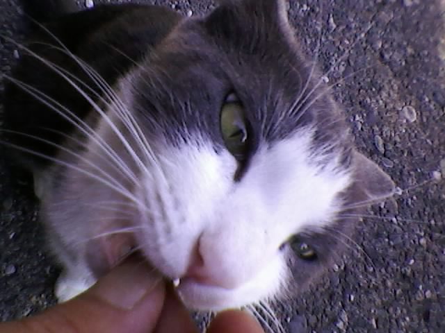Ho vissuta un'esperienza davvero speciale con Sandra, la notte in cui la incontrai per la prima volta, presso il vecchio cimitero; ero disperato, e avevo bevuto, e ancora una volta fu un individuo di un'altra specie a ridarmi quella fiducia che per me è sempre più rara, ormai quasi introvabile, tra gli Homo Sapiens; la Sandra è una micia amorevole e particolarmente loquace. Questa fotografia risale al 29 agosto 2010, scattata con la stessa macchina fotografica di cui sopra;